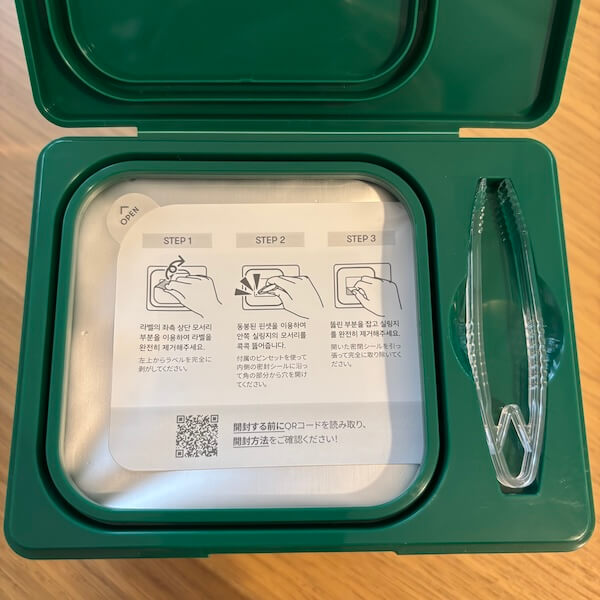 ピンセットが付属してるので直接手を触れなくて済むのは衛生面的にとても良いなと思いました。ただ1枚だけつまみ出すのが意外と難しくて、毎回表面を擦って引っかかる部分を探してました。